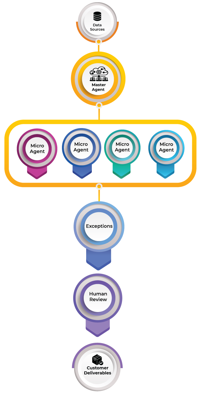 We have developed tried and tested libraries of Enterprise-ready, scalable MicroAgents, SubAgents and MasterAgents
